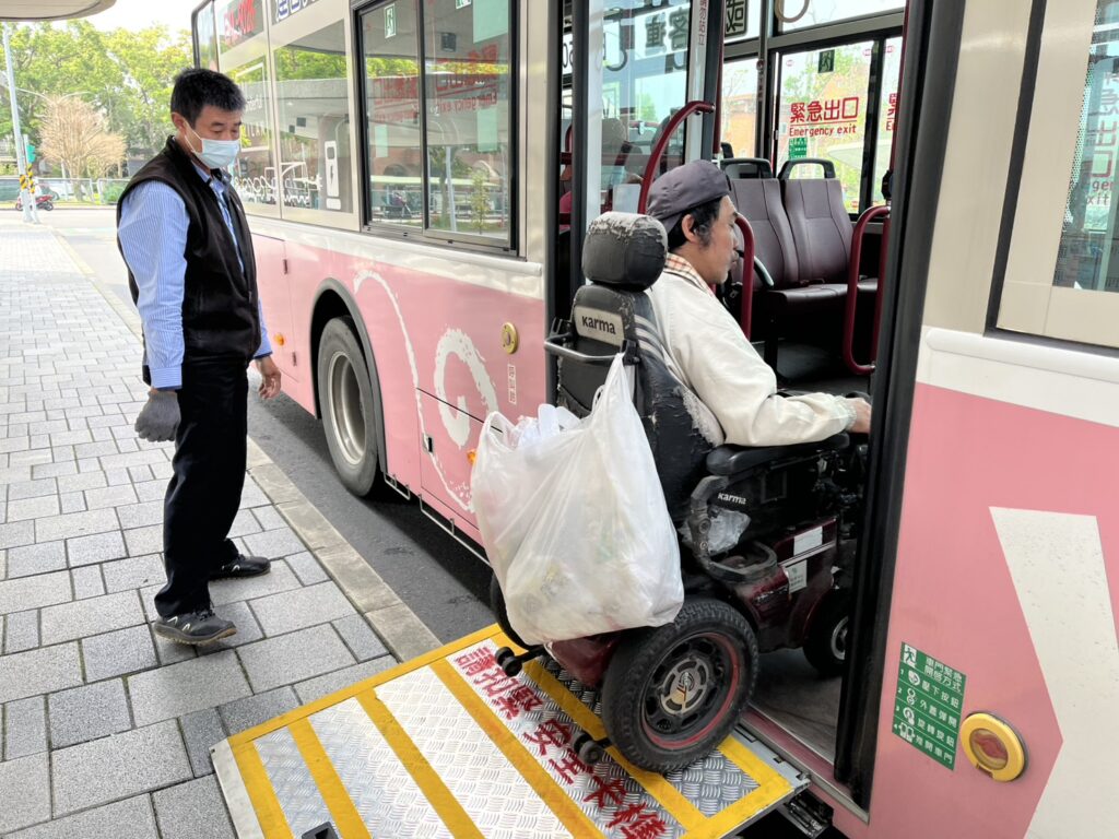 此外,溪北地區復康巴士(如下圖照片),由笙田國際小客車租賃公司得標服務,設備操作及駕駛服務態度等專業友善,值得肯定;另搭乘1766班次低底盤公車(如下圖照片)由宜蘭轉運站前往礁溪湯圍溝,低底盤公車備渡板設施可提供輪椅使用者上下車輛,呼籲會員朋友及縣內身心障礙及年長者,無論外出訪友、休憩購物,可以多加利用舒適便捷的無障礙大眾交通運輸,更期使客運業者打造安全有愛的無障礙乘車環境。