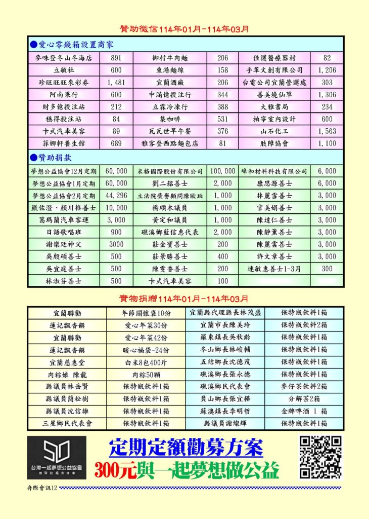 宜蘭縣各界113年寒冬送暖「愛心送年菜」活動,於1月13、22日分別由蓮記飄香饌關懷協會及宜蘭聯勸,假宜蘭縣政府社福館及家樂福圓夢舞台舉行捐贈活動記者會,本會由理事長林錫欽、常務監事魏順男及志工組長何憲忠表代表出席,獲贈「蓮記」年菜30份(150道),宜蘭聯勸春節個案禮金15案(1000元)及「家樂福」年菜40套(200道);另募集宜蘭慈惠堂大米200斤,及各界民意代表茶飲12箱,協會特別編組訪視人員及愛心志工協助年菜分裝、領取及到府親送,嘉惠身心障關懷個案等42案次,家戶116人,希望能在年節前感受到社會各界的溫暖善心,讓大家都能過好年……..